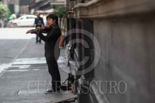 CIUDAD DE MÉXICO, 31JULIO2019.- Un violinista deleita con sus notas musicales en la calle de Filomeno Mata, en el Centro Histórico. FOTO: MOISÉS PABLO /CUARTOSCURO.COM