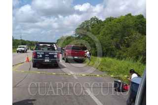 BACALAR, QUINTANA ROO, 31JULIO2019.- Una camioneta fue atacada a balazos a un kilómetro de la comunidad de Limones, en la carretera que conduce a Felipe Carrillo Puerto. Se encontraron dos personas lesionadas y ocho personas sin vida, de los cuales dos cuerpos fueron encontrados en la cabina de la camioneta y los otros fueron hallados entre la maleza y la carretera. FOTO: CUARTOSCURO.COM