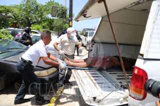 ACAPULCO, GUERRERO, 31JULIO2019.- Una mujer de una edad aproximada a los 25 años fue hallada asesinada a pedradas y tirada a la orilla del tramo carretero Cayaco-Puerto Marqués, a las afueras de un deshuesadero esta mañana al filo de las 12:30 horas. La mujer de aspecto indigente tenía la ropa rasgada y presentaba lesiones en la cara y cabeza, producidas por la rocas con la que fue agredida, al parecer fue abusada sexualmente. Al lugar del hallazgo acudieron las autoridades policíacas y ministeriales para realizar el levantamiento cadavérico y finalmente el cuerpo fue trasladado por los empleados del Servicio Médico Forense e ingresado a sus instalaciones en calidad de desconocida. FOTO: BERNANDINO HERNÁNDEZ /CUARTOSCURO.COM