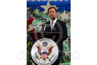 MEXICO, D.F. 30JUNIO2005.- Gerardo Clemente Vega García, secretario de la Defensa Nacional y su esposa durante el festejo del 229 aniversario de la independencia de E.E. U.U. FOTO: Sandra Perdomo/CUARTOSCURO.COM