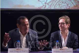 CIUDAD DE MÉXICO, 01AGOSTO2019.- Juan Gregorio Regino, director general INALI, y Ángeles Castro Curría, directora general adjunta de la Academía del Centro Nacional de las Artes (CENART), encabezaron la presentación de la Feria de las Lenguas Indígenas Nacionales (FLIN) 2019, el cual contará como invitado internacional a Canadá e invitados nacionales: Baja California, Chihuahua, Coahuila, Durango, Sinaloa y Sonora. La feria se celebrará del 9 al 11 de agosto en las instalaciones del CENART. FOTO: MARIO JASSO /CUARTOSCURO.COM