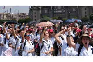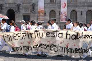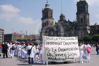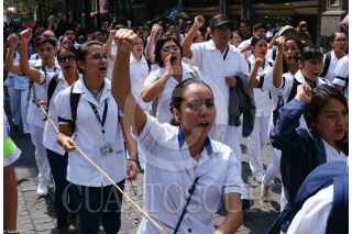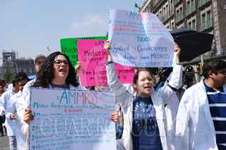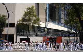 CIUDAD DE MÉXICO, 01AGOSTO2019.- Estudiantes que realizan su Servicio Social en Medicina de la UNAM, el IPN y de la Escuela Nacional de Enfermería y Obstetricia marcharon de Palacio Nacional hacia la Secretaria de Salud para exigir el pago de becas, mejores condiciones en los Centros de Salud y el recorte de presupuesto hacia los pasantes de Medicina. FOTO: GRACIELA LÓPEZ /CUARTOSCURO.COM