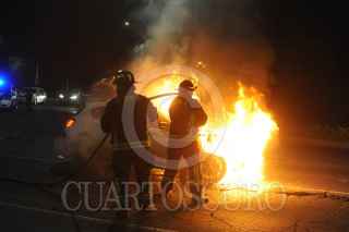 CIUDAD DE MÉXICO., 02AGOSTO2019.- Un auto BMW fue consumido por las llamas al impactar contra una camioneta en Periférico a la altura de Cuemanco en Xochimilco. Bomberos laboraron en el lugar para sofocar el fuego. FOTO: LUIS CARBAYO /CUARTOSCURO.COM