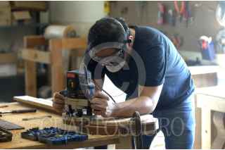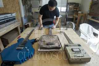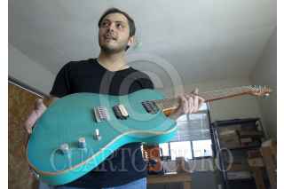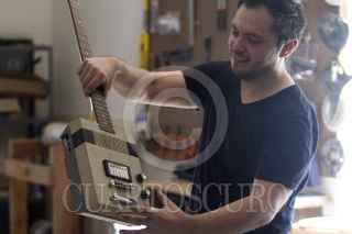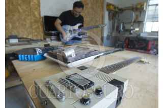 GUADALUPE, NUEVO LEÓN, 02AGOSTO2019.- El laudero Allan Flores desde hace seis años crea guitarras especiales ya sea de material recilcado u otros componentes que hacen únicas sus fabricaciones, como utilizar una consola de Nintendo, luces led, guitarras en forma de pixeles, chatarra de metal, entre otros. El joven de 33 años realiza conceptos personalizados y termina el proceso de principio a fin en su taller, quien aprendió los principios del oficio en un diplomado, pero mayormente por su cuenta, el cuál es el único en el área metropolitana de Monterrey. FOTO: GABRIELA PÉREZ MONTIEL /CUARTOSCURO.COM