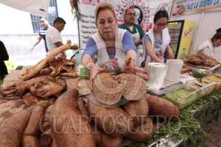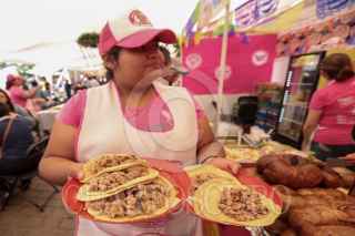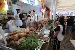 TENANCINGO, ESTADO DE MÉXICO, 02AGOSTO2019.- La explanada del Jardín Morelos en este municipio fue la sede para la 16 Feria del Obispo, embutido preparado con carne de cerdo y especies y algunas semillas, y es considerado el platillo típico de Tenancingo; 11 productores ofrecieron obispo tradicional y especial a los visitantes de esta feria que termina el 4 de agosto. FOTO: CRISANTA ESPINOSA AGUILAR /CUARTOSCURO.COM
