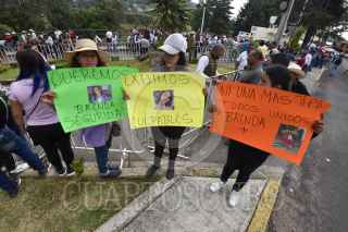 AMANALCO, ESTADO DE MÉXICO, 03AGOSTO2019.- Familiares y amigos de Brenda Cruz García, una joven de 21 años originaria de Amanalco que desapareció el 14 de julio y apareció muerta una semana después en el municipio de Almoloya de Juárez, lo último que se supo de ella es que abordó un taxi con dirección a la ciudad de Toluca; exigen justicia y se esclarezca su homicidio durante la gira de Andrés Manuel López Obrador, Presidente de México en este municipio. FOTO: CRISANTA ESPINOSA AGUILAR /CUARTOSCURO.COM