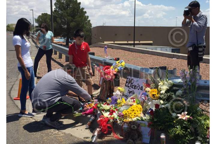 EL PASO, TEXAS, 05AGOSTO2019.- Habitantes de la localidad colocaron flores en el sitio del tiroteo masivo en el Walmart de Cielo Vista, en el que dejó a veinte muertos, entre ellos 8 mexicanos. El canciller Marcelo Ebrard anunció el día de ayer que la Secretaría de Relaciones Exteriores promoverá las acciones legales correspondientes en contra de quien resulte responsable de la venta del arma de asalto que disparó el sábado pasado. FOTO: NACHO RUÍZ /CUARTOSCURO.COM