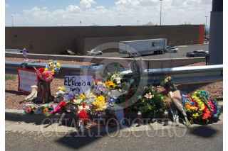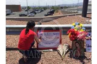 EL PASO, TEXAS, 05AGOSTO2019.- Habitantes de la localidad colocaron flores en el sitio del tiroteo masivo en el Walmart de Cielo Vista, en el que dejó a veinte muertos, entre ellos 8 mexicanos. El canciller Marcelo Ebrard anunció el día de ayer que la Secretaría de Relaciones Exteriores promoverá las acciones legales correspondientes en contra de quien resulte responsable de la venta del arma de asalto que disparó el sábado pasado. FOTO: NACHO RUÍZ /CUARTOSCURO.COM