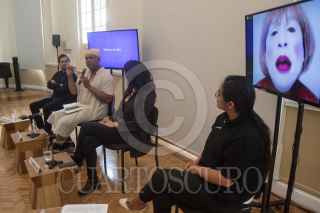 CIUDAD DE MÉXICO, 06AGOSTO2019.- El artista Vaginal Davis y la Curadora Cinthya García Leyva, durante la presentación de la primera edición de Materia Abierta, Novo Pan Klub, un programa independiente de verano sobre teoría, arte y tecnología, en la Casa del Lago. FOTO: ISAAC ESQUIVEL /CUARTOSCURO.COM