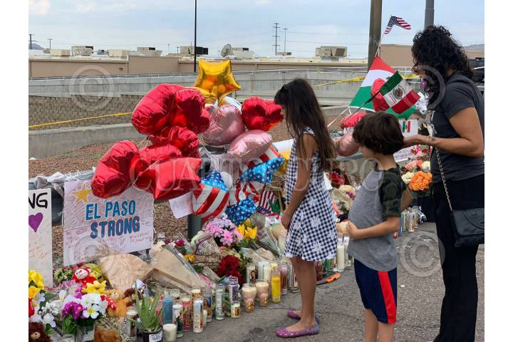 EL PASO, TEXAS, ESTADOS UNIDOS, 06AGOSTO2019.- Habitantes de la localidad colocaron un altar con flores y peluches en el el sitio dónde ocurrió el tiroteo masivo del Wallmart de Cielo Vista en honor a las víctimas que murieron. FOTO: URIEL POSADA /CUARTOSCURO.COM