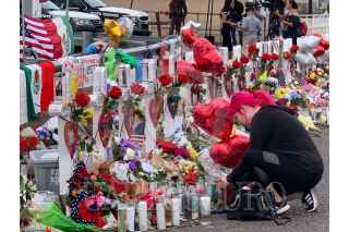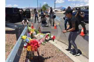 EL PASO, TEXAS, ESTADOS UNIDOS, 06AGOSTO2019.- Habitantes de la localidad colocaron un altar con flores y peluches en el el sitio dónde ocurrió el tiroteo masivo del Wallmart de Cielo Vista en honor a las víctimas que murieron. FOTO: URIEL POSADA /CUARTOSCURO.COM
