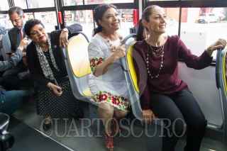 CIUDAD DE MÉXICO, 06AGOSTO2019.- Claudia Sheinbaum Pardo, mandataria de la Ciudad, en la alcaldía de Iztapalapa, encabezó la presentación del proyecto "Monitoreo Integral de Seguridad del Transporte Público vía GPS". Ernestina Godoy, Andrés Lajous, Clara Brugada y Jesús Orta, la acompañaron en este evento. FOTO: VICTORIA VALTIERRA / CUARTOSCURO.COM