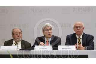 CIUDAD DE MÉXICO, 06AGOSTO2019.- Ángel Córdova, Guillermo Soberón, Julio Frenk y José Narró, encabezaron la segunda sesión, del Consejo Consultivo Ciudadano Piensa México, en donde se abordó el tema, "El sistema de salud en México: ¿Transformación o Crisis?, en el Hotel Crowne. FOTO: ROGELIO MORALES /CUARTOSCURO.COM