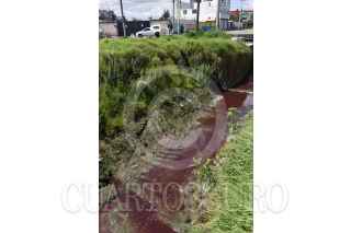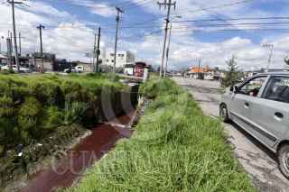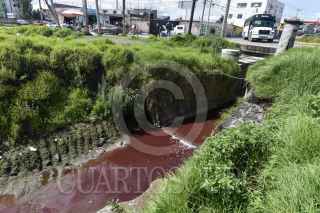 TOLUCA, ESTADO DE MÉXICO, 07JULIO2019.- Vecinos del Barrio de la Trinidad en San Cristobal Huichochitlán se quejan del mal olor y el color rojo que se observa en el tramo del Río Verdiguel qué pasa por este zona, ya que se tiran los residuos del rastro municipal que se encuentra a unos metros del lugar, este problema lo han tenido durante mucho tiempo y siguen sin hacerles caso a los reportes que realizan. FOTO: CRISANTA ESPINOSA AGUILAR /CUARTOSCURO.COM