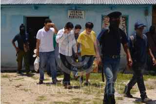 OCOSINGO, CHIAPAS, 07AGOSTO2019.- Pobladores del ejido Rio Florido integrantes de Frente Nacional de Lucha por el Socialismo, liberaron a los policías que mantuvieron retenidos durante más de 15 días, después de que hombres vestidos de civil detuvieran y después entregaran a las autoridades estatales a Javier González, quien sigue preso en el Cerrs 5, y no contó con un juicio legal ni pruebas que lo responsabilizan de un supuesto robo. Los familiares de los policías e integrantes del FNLS sostuvieron un diálogo y acordaron que se liberaría a los policías como un acto político y de voluntad para que de esta forma el gobierno también libere a su compañero Javier González Díaz, se informó que el gobierno no participó en estos diálogos y no han dado soluciones ni respuestas. FOTO: ISABEL MATEOS /CUARTOSCURO.COM