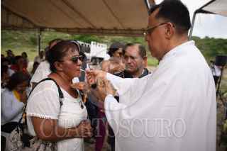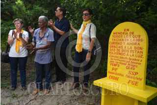 VERACRUZ, VERACRUZ, 08AGOSTO,2019.- El Sacerdote Victor Díaz Mendoza ofreció una misa dentro del predio de Colinas de Santa Fe, para concluir la búsqueda de personas desaparecidas en el sitio que dejó un total de 298 cráneos y más de 22 mil restos humanos enterrados en fosas clandestinas. Después de 3 años de búsqueda el Colectivo Solecito de Veracruz dio por clausurada las tareas. FOTO: VICTORIA RAZO /CUARTOSCURO.COM