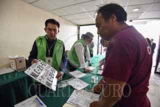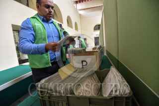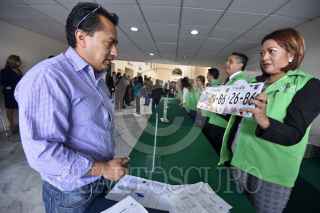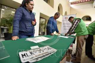 TOLUCA, ESTADO DE MÉXICO, 08AGOSTO2019.- Como una forma de agilizar el trámite de entrega de placas a los propietarios de vehículos que han realizado su trámite de reemplacamiento en línea se instalaron módulos de atención exprés en el Centro de Servicios Administrativos “Miguel Hidalgo y Costilla” en donde se tienen organizadas las láminas por paquetes y en menos de 5 minutos reciben sus placas. La Secretaría de Finanzas informó que hasta el momento se han entregado mas de 334 mil placas, en promedio se otorgan más de 17 mil placas al día. FOTO: CRISANTA ESPINOSA AGUILAR /CUARTOSCURO.COM