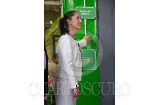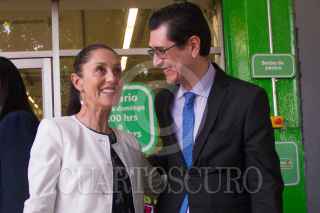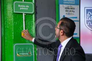 CIUDAD DE MÉXICO, 08AGOSTO2019.- La jefa del Gobierno de la Ciudad, Claudia Sheinbaum Pardo, acudió esta tarde a la Bodega Aurrera Tacubaya, donde presentaron el botón de pánico. Victor Romo, alcalde de Miguel Hidalgo, Jesús Orta, titular de la SSC y Juan Manuel García director del centro de Control y vigilancia C5, acompañaron a la mandataria de la Capital. FOTO: VICTORIA VALTIERRA /CUARTOSCURO.COM