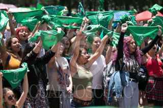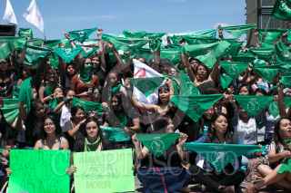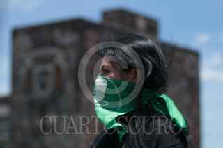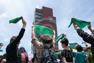 CIUDAD DE MÉXICO, 08AGOSTO2019.- Estudiantes de diversas facultades de la Universidad Nacional Autónoma de México (UNAM) realizaron en las explanada de la rectoría un "pañuelazo" por la marea verdad, evento convocado para exigir que la interrupción legal del embarazo sea gratuita y legal en todo el país. FOTO: GALO CAÑAS /CUARTOSCURO.COM