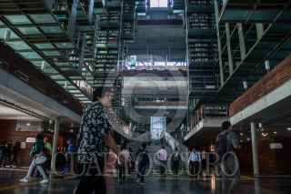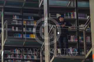CIUDAD DE MÉXICO, 08AGOSTO2019.- La silueta de un hombre se refleja entre los cristales que tienen como piso y paredes la emblemática biblioteca Vasconcelos. FOTO: ANDREA MURCIA /CUARTOSCURO.COM