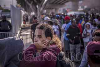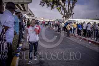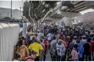 TIJUANA, BAJA CALIFORNIA, 09AGOSTO2019.- Decenas de migrantes, en su mayoría de nacionalidad africana, acuden a temprana hora al puerto fronterizo de El Chaparral con la intensión de obtener turno para ser entrevistados por autoridades de Estados Unidos, en busca de obtener asilo humanitario. FOTO: OMAR MARTÍNEZ /CUARTOSCURO.COM