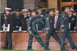 CIUDAD DE MÉXICO 09AGOSTO2019.- Luis Cresencio Sandoval, secretario de Defensa Nacional y José Rafael Ojeda Durán, secretario de Marin, encabezaron esta tarde la Ceremonia de Graduación de la 38/a Antigüedad de la Maestría Militar para la Seguridad Interior y Defensa Nacional, celebrada en la Universidad del Ejército y Fuerza Aérea (Ex Colegio Militar de Popotla). FOTO: MARIO JASSO /CUARTOSCURO.COM