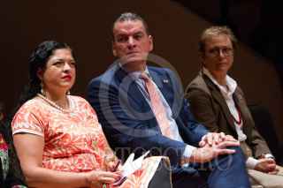 CIUDAD DE MÉXICO, 09AGOSTO2019.- Alejandra Frausto, secretaría de cultura federal y Pierre Alarie, embajador de Canadá en México, encabezaron la Ceremonia inaugural de la Feria de las Lenguas Indígenas Nacionales (FLIN) 2019, en el Centro Nacional de las Artes (CENART). FOTO: ROGELIO MORALES /CUARTOSCURO.COM