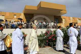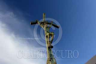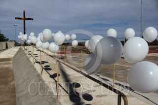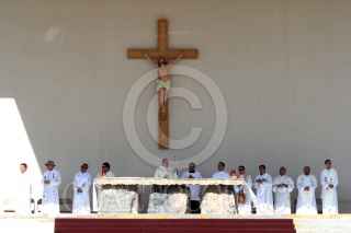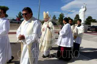 CIUDAD JUÁREZ, CHIHUAHUA, 10AGOSTO2019.- El Obispo de Ciudad Juárez José Guadalupe Torres, encabezó una misa en honor a las personas que perdieron la vida en la masacre en el Paso Texas la semana pasada. A la misa asistieron unas cien personas, quienes se sentaron en sillas en parte de la estructura del altar que se construyó para la visita del Papa Francisco en febrero del 2016. FOTO: NACHO RUIZ /CUARTOSCURO.COM