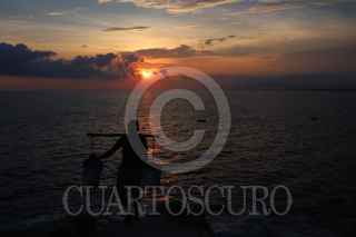 ACAPULCO, GUERRERO, 10AGOSTO2019.- Pescadores trabajan previo a la puesta de sol después de una lluvia. FOTO: BERNANDINO HERNÁNDEZ /CUARTOSCURO.COM