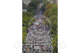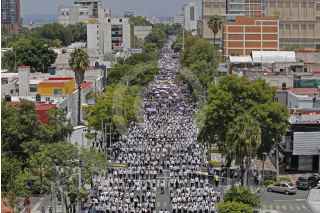 GUADALAJARA, JALISCO, 11AGOSTO2019.- La iglesia de la Luz del Mundo movilizo esta tarde a mas de 150 mil jóvenes de 58 países en lo que la congregación denomina “Caminata Juvenil” la cual partió del Parque Rojo hasta la Glorieta de la Minerva, esto en el marco de la edición 81 de la “Santa Convocación” de la Luz del Mundo. FOTO: CUARTOSCURO.COM