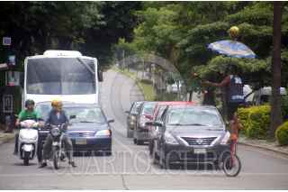 CUERNAVACA, MORELOS, 12AGOSTO2019. Un joven en monociclo hace malabares con tres teas de fuego, y equilibra con la boca un paraguas sobre el cual hay un balón girando. La escena en el crucero de la avenida Vicente Guerrero en la capital del estado. FOTO: MARGARITO PÉREZ RETANA /CUARTOSCURO.COM