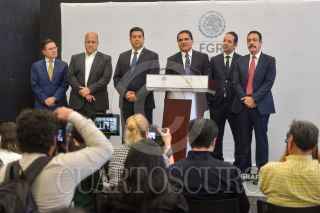 CIUDAD DE MÉXICO, 12AGOSTO2019.- José Rosas Aispuro, gobernador de Durango; Enrique Alfaro, gobernador de Jalisco; Francisco Javier García Cabeza de Vaca, gobernador de Tamaulipas; Silvano Aureoles, gobernador de Michoacán, Francisco Domínguez, gobernador de Querétaro, y Omar Fayad, gobernador de Hidalgo, ofrecieron conferencia de prensa tras la reunión con el titular de la Fiscalía General de la República (FGR), Alejandro Gertz Manero. En dicha reunión entre la FGR y la Conferencia Nacional de Gobernadores (CONAGO) se trataron los temas de limitaciones a la Guardia Nacional, así como el tráfico de armas. FOTO: ALBERTO ROA /CUARTOSCURO.COM