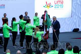 CIUDAD DE MÉXICO, 13AGOSTO2019.- El presidente Andrés Manuel López Obrador encabezó el abanderamiento de la federación mexicana que participara en los Juegos Parapanamericanos de Lima, Perú 2019. FOTO: GALO CAÑAS /CUARTOSCURO.COM