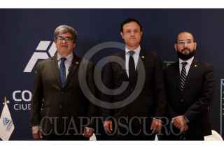 CIUDAD DE MÉXICO, 13AGOSTO2019.- Gabriel Funez Díaz, presidente de Comisión Electoral; Jesús Padilla Zenteno, presidente de COPARMEX, y José Luis Jiménez Barrera, vicepresidente a Asociaciones y Vinculación, durante la conferencia de prensa en la que informaron sobre su posicionamiento sobre los bienes y servicios del consumidor en estos cinco meses. Se realizó en el Gran Salón Club de Banqueros. FOTO: GRACIELA LÓPEZ /CUARTOSCURO.COM