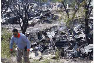 GUADALUPE, NUEVO LEÓN, 14AGOSTO2019.- Un incendio ocurrido en un predio irregular al oriente del área metropolitana de Monterrey llamado "El Ranchito" la noche del martes, deja sin hogar más de 200 personas que conforman la comunidad, 80 tejabanes destruidos y alrededor de 10 caballos muertos en el siniestro. Las 50 familias se dedican a la recolección de basura utilizando carretas y caballos en las colonias aledañas al sector. Decenas de personas han arribado al lugar a brindarles ropa a los afectados. FOTO: GABRIELA PÉREZ MONTIEL /CUARTOSCURO.COM