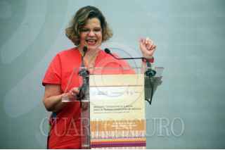 CUERNAVACA, MORELOS, 15AGOSTO2019. Nadine Gasman, directora del Instituto Nacional de la Mujer durante su intervención en el evento inaugural del foro, Trabajando Juntas por la Transformación de México. FOTO: MARGARITO PÉREZ RETANA /CUARTOSCURO.COM