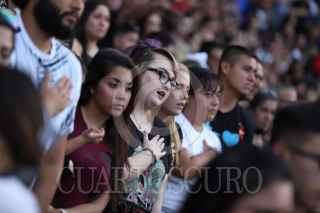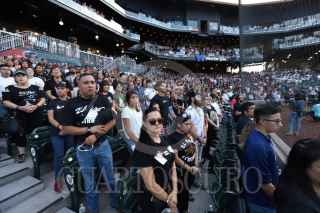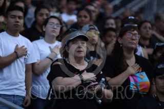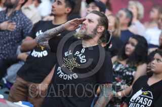 CIUDAD JUÁREZ, CHIHUAHUA, 15AGOSTO2019.- El gobernador de Texas, Greg Abbott, y el Mayor de El Paso, Dee Margo, acompañado de su esposa Adair Margo y habitantes de El Paso Texas y Ciudad Juárez rindieron homenaje a las víctimas del ataque que el pasado 3 de agosto dejó 22 muertos en el Walmart del área de Cielo Vista Mall. Con el lema “El Paso Strong”, que ha identificado a esta comunidad desde el 3 de agosto, cuando se registró la masacre, habitantes de ambos lados de la frontera se congregaron en el estadio Southwest. Con el “Amor eterno” de Juan Gabriel, un mariachi recordó los lazos de la comunidad mexicana en esta ciudad. FOTO: NACHO RUÍZ /CUARTOSCURO.COM