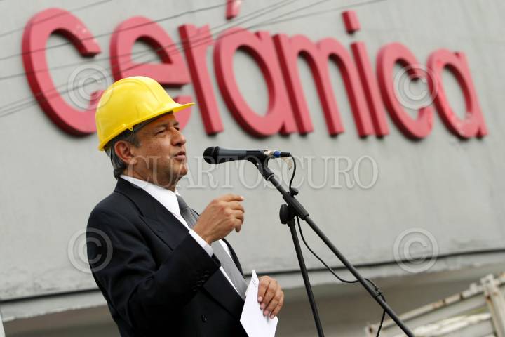 MEXICO, DF 19JULIO2005.- Ruth Zabaleta delegada de Venustiano Carranza y el jefe de gobierno Andrés Manuel López Obrador escuchan la explicación técnica del secretario de obras públicas Cesar Buenrostro durante la supervisión de la construcción de la segunda fase de los ejes viales en la avenida Oceania. FOTO: Miguel Dimayuga/CUARTOSCURO.COM