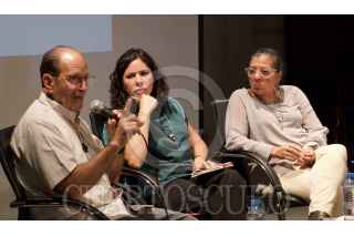 CIUDAD DE MÉXICO, 15AGOSTO2019.- Alejandro Solalinde, defensor de los Derechos Humanos y Nasheli Ramírez, presidenta de la Comisión de Derechos Humanos de ciudad, durante la conferencia la Perspectiva actual de los migrantes en el Centro Cultural España en México. FOTO: ROGELIO MORALES /CUARTOSCURO.COM