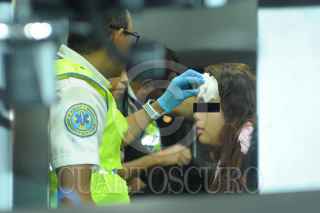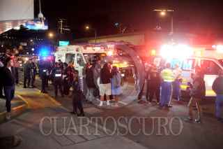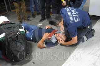CIUDAD DE MÉXICO., 17AGOSTO2019.- Tres hombres y una joven integrante de los manifestantes resultaron lesionados, al enfrentarse al interior de la estación del Metro Cuauhtémoc, a donde arribaron policías y ambulancias para controlar la situación. Las cuatro personas fueron atendidas por paramédicos del ERUM. FOTO: LUIS CARBAYO /CUARTOSCURO.COM