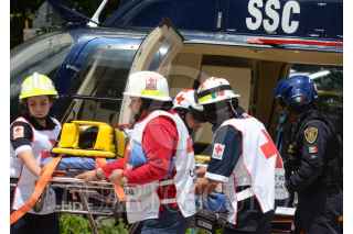 CIUDAD DE MÉXICO, 19AGOSTO2019.- Un hombre de aproximadamente 35 años se electrocuto con un transformador cuando se encontraba trabajando en un segundo piso, la víctima fue trasladado en el helicóptero de la policía al hospital Rubén Leñero. Los hechos ocurrieron en la calle Indio triste y avenida las Minas en la colonia Citlali en Iztapalapa. FOTO: ARMANDO MONROY / CUARTOSCURO.COM