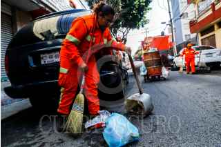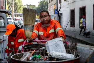 CIUDAD DE MÉXICO, 19AGOSTO2019.- Una cuadrilla de 11 mujeres recorre las calles de la alcaldía Cuauhtémoc barriendo con su escobas desde las 7:00 de la mañana en las principales colonias del centro histórico y las cuales son catalogadas como las mas peligrosas en cuestión de seguridad (Tepito-Morelos-Peralvillo). La mujeres integrantes de esta brigada aseguran que los vecinos de dichos lugares donde trabajan diariamente las ven con orgullo y respeto por lo que nunca han sufrido de alguna agresión y eso las motiva a seguir trabajando con mayor esfuerzo diariamente en esta ciudad que es de las que mas basura genera a nivel mundial. FOTO: URIEL GUADARRAMA /CUARTOSCURO.COM