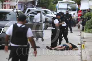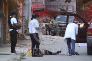 ACAPULCO, GUERRERO, 19AGOSTO2019.- Un enfrentamiento y balacera registrada en la calle Retorno Almendros de la colonia Jardín Azteca, dejó el saldo de un hombre muerto al enfrentarse con policías estatales y municipales. Los presuntos delincuentes viajaban en una camioneta marca Jeep tipo Cherokee con placas de Guerrero. Uno de los delincuentes quedó muerto en la calle, mientras que los demás se dieron a la fuga a bordo de otro vehículo. Una mujer embarazada que se hallaba a la hora de los hechos, se asustó y sufrió una crisis nerviosa, siendo atendida por los paramédicos de la Cruz Roja. Empleados del Servicio Médico Forense llevaron a cabo las diligencias del levantamiento cadavérico quedando en calidad de desconocido en el lugar de los hechos se encontraron barios casquillos percutidos. FOTO: BERNANDINO HERNÁNDEZ /CUARTOSCURO.COM