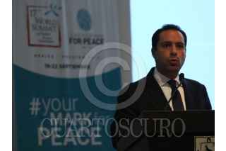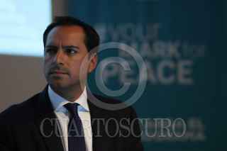 CIUDAD DE MÉXICO, 20AGOSTO2019.- Mauricio Vila Dosal, gobernador de Yucatán, y Michelle Fridman Hirsch, secretaria de Turismo del estado, fueron los encargados de presentar y dar detalles de las actividades que se desarrollarán en la entidad con motivo de la Cumbre Internacional de los premios Nobel de la paz 2019, que se celebrarán en la ciudad Maya a partir del 19 de septiembre del presente año. FOTO: GALO CAÑAS /CUARTOSCURO.COM