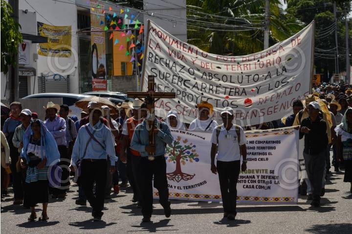 SAN CRISTOBAL DE LAS CASA, CHIAPAS, 20AGOSTO2019.- Integrantes del Movimiento en Defensa de la Vida y del Territorio, provenientes de once municipios de los pueblos Tseltal, Tseltal y mestizo realizaron una mega peregrinación desde el San Cristobal de las Casas hasta la cabecera municipal de Tuxtla, para exigirle al nuevo gobierno detenga los mega proyectos que pretenden despojarlos de sus tierras y su cultura, ya que confirman que el gobierno continua con el sistema capitalista y mecanismo de imposición. FOTO: ISABEL MATEOS /CUARTOSCURO.COM