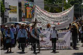 SAN CRISTOBAL DE LAS CASA, CHIAPAS, 20AGOSTO2019.- Integrantes del Movimiento en Defensa de la Vida y del Territorio, provenientes de once municipios de los pueblos Tseltal, Tseltal y mestizo realizaron una mega peregrinación desde el San Cristobal de las Casas hasta la cabecera municipal de Tuxtla, para exigirle al nuevo gobierno detenga los mega proyectos que pretenden despojarlos de sus tierras y su cultura, ya que confirman que el gobierno continua con el sistema capitalista y mecanismo de imposición. FOTO: ISABEL MATEOS /CUARTOSCURO.COM
