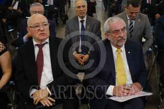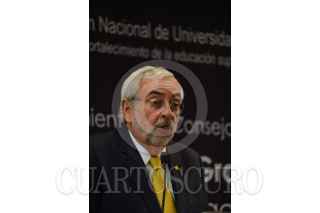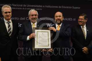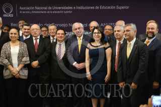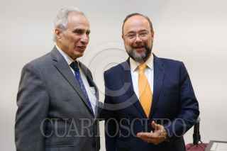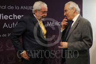 CIUDAD DE MÉXICO, 20AGOSTO2019.- Enrique Graue Wiechers, rector de la UNAM, y Dionisio Meade conversaron durante la entrega del reconocimiento al rector por su labor frente a la máxima casa de estudios, durante la sesión ordinaria del Consejo Nacional de la Asociación Nacional de Universidades e Instituciones de Educación Superior (ANUIES). FOTO: GRACIELA LÓPEZ /CUARTOSCURO.COM