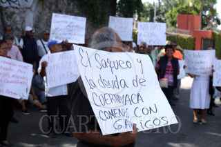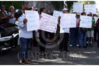 CUERNAVACA, MORELOS, 20AGOSTO2019. Protesta de la Asociación Cívica Morelense frente al edificio del congreso local por la situación de escases de agua en la capital. El Sistema de Agua Potable y Alcantarillado de Cuernavaca tiene una deuda millonaria con la Comisión Federal de Electricidad, la cual corta el suministro eléctrico a los pozos, causando escases o tandeos de agua. Los manifestantes piden que el congreso intervenga para resolver la situación. FOTO: MARGARITO PÉREZ RETANA /CUARTOSCURO.COM
