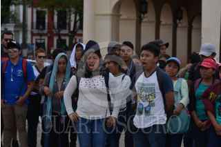 SAN CRISTOBAL DE LAS CASAS, CHIAPAS, 21AGOSTO2019.- Estudiantes de la Escuela Normal Indígena Intercultural Bilingüe Jacinto Canek, realizaron una marcha pacifica por las calles del municipio exigiendo la aparición de tres de sus compañeros, quienes dejaron de comunicarse después de la agresión que sufrieron por parte de la policía estatal y federal durante un boteo que realizaban en la caseta Chiapa de Corzo, entrada a la capital del estado. FOTO: ISABEL MATEOS /CUARTOSCURO.COM