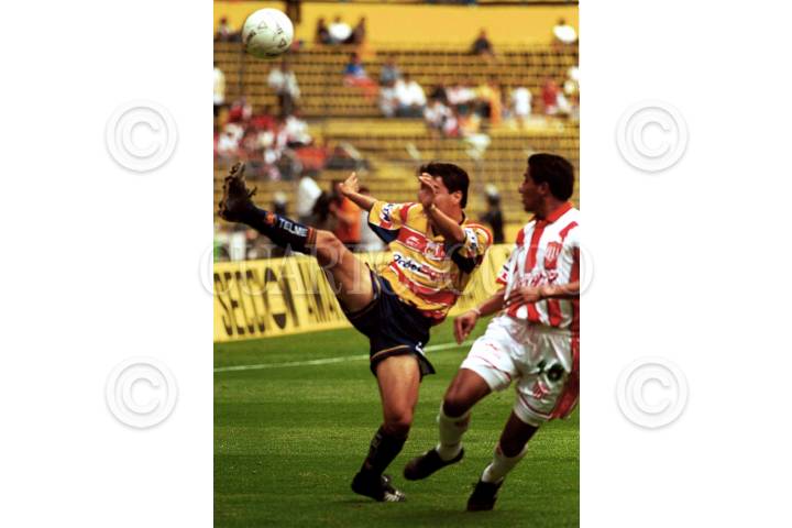 Carlos Pavon intenta batir al portero del Necaxa, Alexandro Alvarez, durante el encuentro de esta tarde en el azteca. FOTO: Christian Palma/CUARTOSCURO.COM